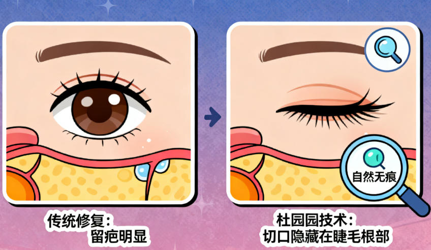 杜园园医生在外眼角修复领域的技术实力有目共睹。她独研的“眼轮匝肌立体再构 + 眼睑动态协调术”能够稳准修复外眼角形态,使术后疗效自然协调。与传统修复方法相比,杜医生的技术具有以下优势: